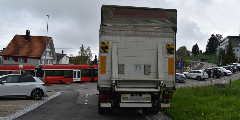 Um 13.45 Uhr fuhr ein 57-jähriger Mann mit seinem Lastwagen mit Sattelauflieger auf der St.Gallerstrasse von der Vögelinsegg in Richtung St.Gallen. Er beabsichtige nach links in das Quartier obere Hinterwies abzubiegen. Zur selben Zeit fuhr eine Komposition der Appenzeller Bahnen von der Haltestelle Vögelinsegg in Richtung St.Gallen. Beim Abbiegevorgang des Lastwagens, scherte das Heck des Aufliegers aus und touchierte dabei einen Wagen des fahrenden Zuges.