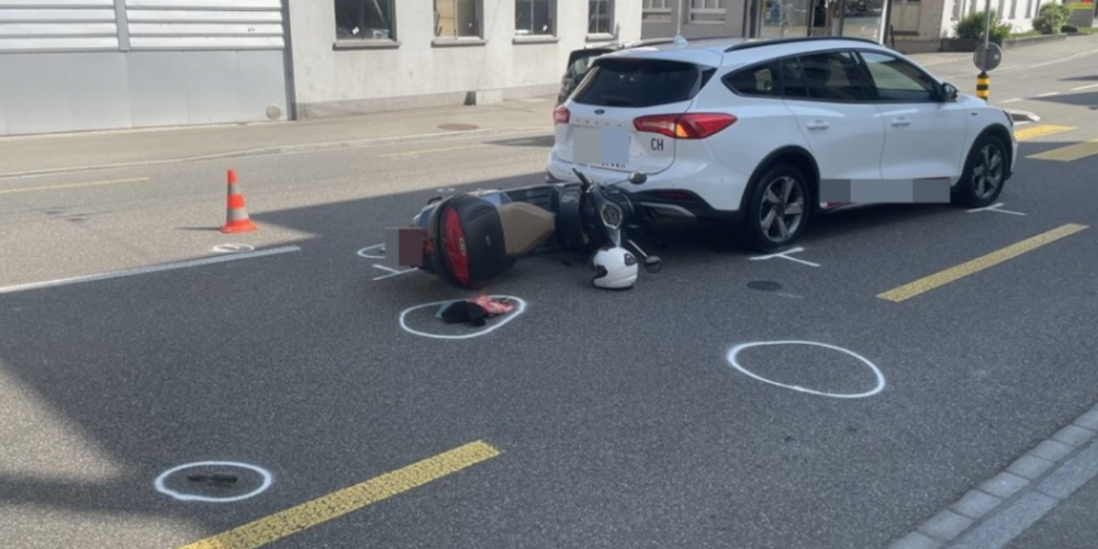 Am Freitag kurz vor 10 Uhr fuhr ein 22-jähriger Autofahrer mit seinem Fahrzeug auf der Zürcher Strasse stadteinwärts. Wegen einer Fussgängerin, welche den Fussgängerstreifen überquerte, hielt der Autofahrer vor dem Fussgängerstreifen an. Ein Motorradfahrer, der hinter dem Personenwagen fuhr, bemerkte das Bremsmanöver des Autofahrers zu spät. In der Folge kam es zur Auffahrkollision.
