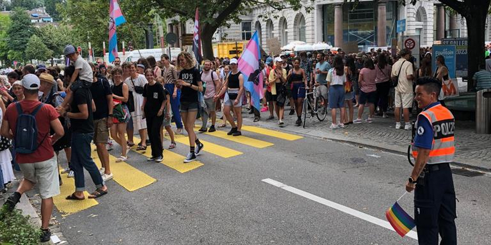 Um 15 Uhr versammelten sich die Menschen im St. Leonardpark. Dort standen Reden und ein Bühnenprogramm mit Musik im Vordergrund. Unter anderem bekannte sich St. Gallens Stadtpräsidentin Maria Pappa zu Gleichberechtigung und Vielfalt.