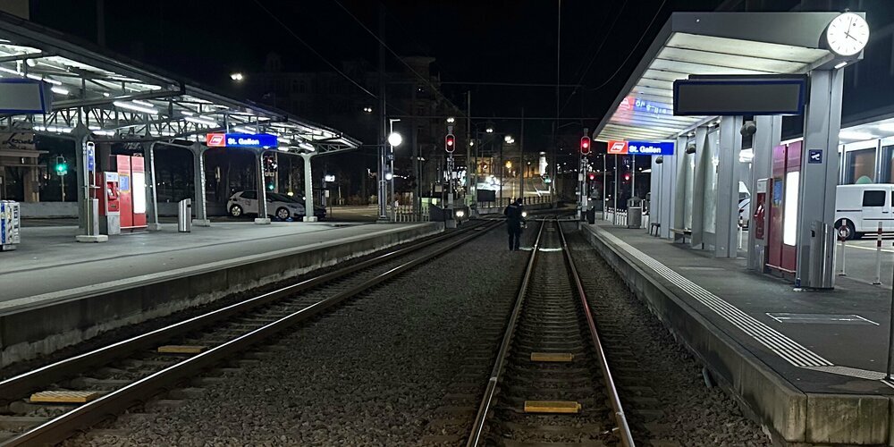Beim Wendeplatz überquerte er zwei Rangiergleise und blieb stehen. Dort konnte er durch eine Patrouille der Stadtpolizei St.Gallen angehalten werden.