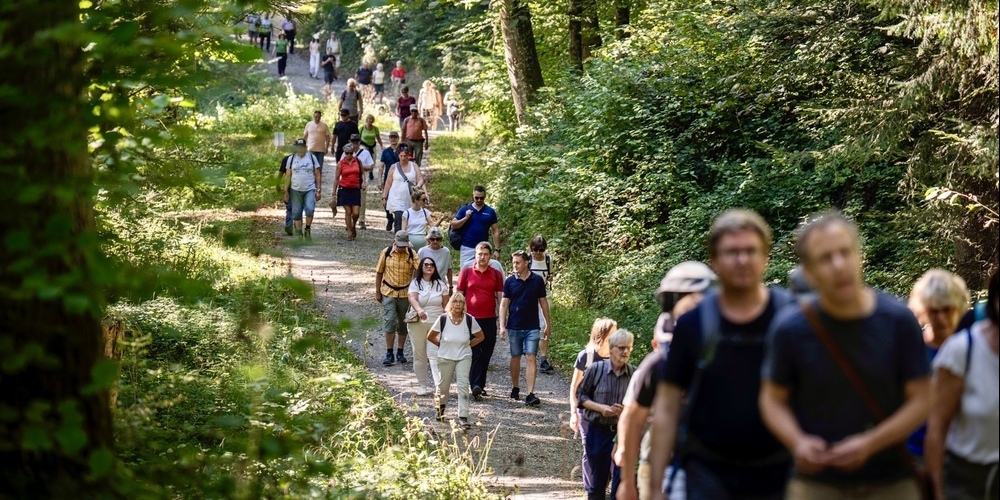 Bei herrlichem Spätsommerwetter konnten die Teilnehmer auf verschiedenen Routen den Weg durch ortsbürgerliche Wälder zum Festplatz auf einem der 17 ortsbürgerlichen Landwirtschaftsbetriebe, dem Hof Herbrig, geniessen.