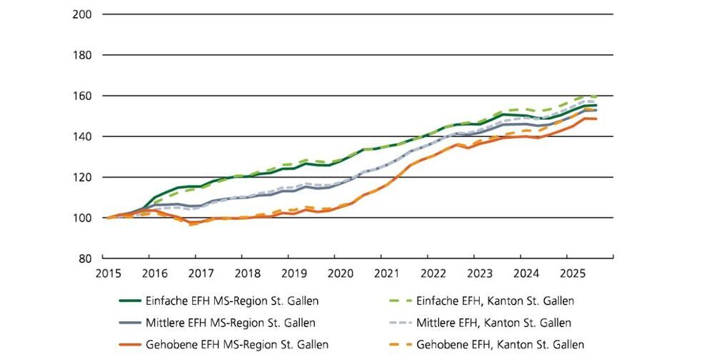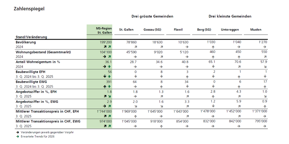 Der Wohnraumbedarf in der Region St.Gallen ist im Jahr 2025 erneut gestiegen. Begünstigt durch das anhaltende Bevölkerungswachstum und tiefe Finanzierungskosten bleibt das Interesse am Erwerb von Wohneigentum hoch.