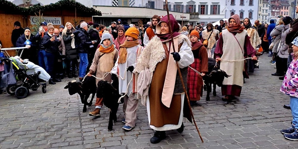Am 14. Dezember fand in der Stadt St.Gallen die traditionelle Weihnachtsreise statt. Zahlreiche Freiwillige zogen traditionell verkleidet durch die Gassen und Strassen und spielten an verschiedenen Plätzen ein Stück der Weihnachtsgeschichte nach. Sei es die Audienz bei Herodes, die Szene in der Krippe oder auch die Schafhirten bei der Arbeit.