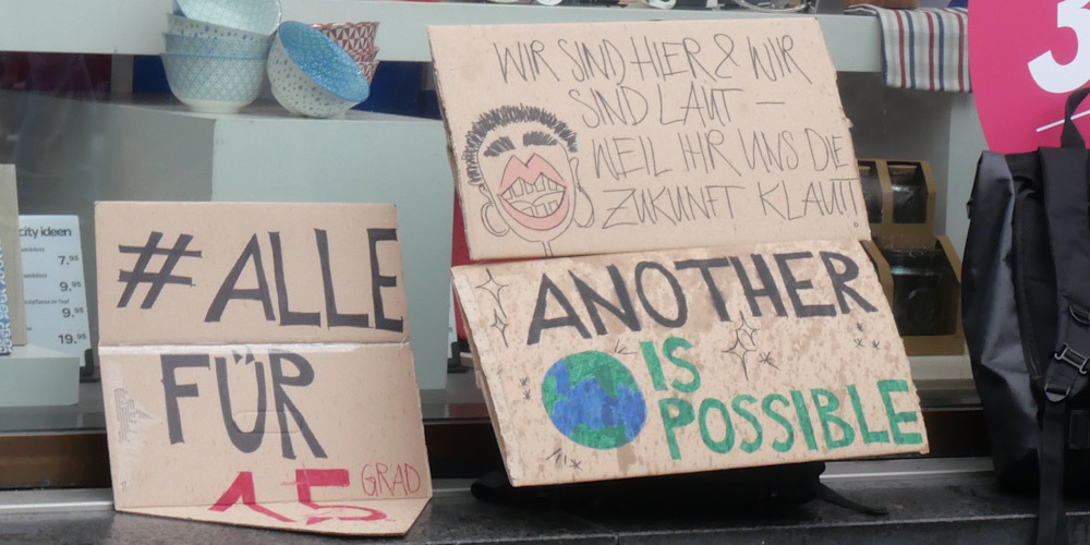 Mit Transparenten folgten die Kundgebungsteilnehmer einem Aufruf der Bewegung «Strike for Future». Über 160 Gruppen in der Schweiz und in Liechtenstein planten ähnliche Aktionen, um «die Forderung nach einer sozialen und ökologischen Gesellschaft auf die Strasse zu tragen», wie die Aktivistin Léonie Schubiger laut einem Communiqué erklärte.