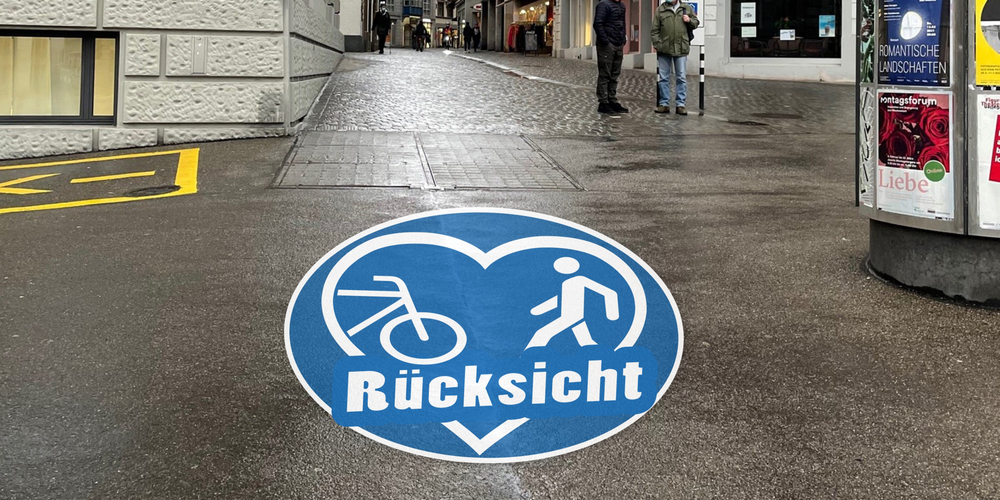 In Begegnungszonen, wie zum Beispiel der Multergasse, teilen sich Fussgänger und Velofahrer die Strasse. Dabei kann es zu Konflikten kommen. Aufgrund diverser Reklamationen von Fussgänger bezüglich rücksichtlosen Velofahrern hat die Stadtpolizei St.Gallen im April zusammen mit dem städtischen Tiefbauamt die Sensibilisierungskampagne «Rücksicht» lanciert.
