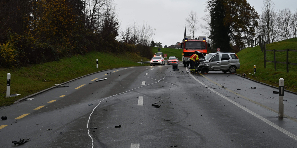 Dabei geriet sein Auto nach links über den Mittelstreifen. Folglich kollidierte es seitlich-frontal mit dem Auto der entgegenkommenden 66-Jährigen. Die 89-jährige Beifahrerin der 66-jährigen Frau wurde leicht verletzt. Der Rettungsdienst brachte sie ins Spital. Es entstand Sachschaden von mehreren tausend Franken. Aufgrund dem Auslaufen von Flüssigkeit wurde die Feuerwehr aufgeboten. Die Strasse musste für über eine Stunde gesperrt werden.